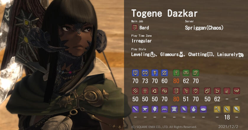 the warrior of light who forever forges ahead,after dalamuds fall, her family was forever fragmented and drove her to seek more and fuel her regrets into helping others in any way she could.